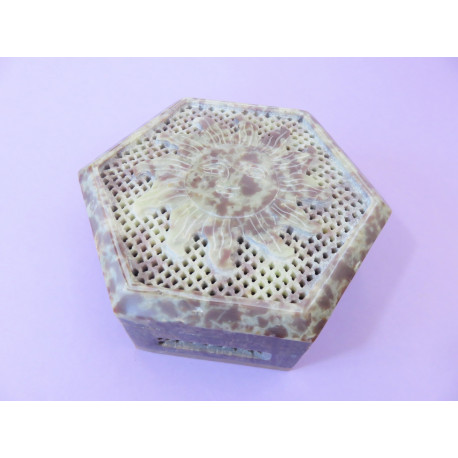 Boite en pierre de savon hexagonale sculptée avec soleil