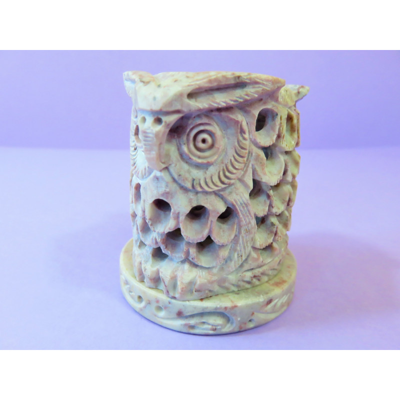 Porte encens hiboux 2 têtes pour cônes en pierre de savon